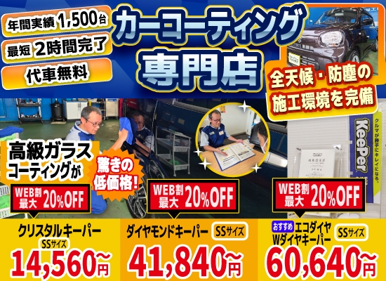 さらにクリスタルキーパー以上を施工されるお客様は代車無料!